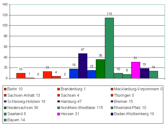 I have to add, that both organisations I work for, "Arbeitsgemeinschaft Kinder- und Jugendschutz (ajs)" in Hamburg, a non-governmental organisation on child- and youth protection, and S.PORG.-Consulting in Lueneburg, where my colleague and I had worked on a special project on counselling on Ritual Abuse, did not participate in this study due to an extraordinary amount of clients as well as to avoid cases being counted twice - due to 'co-counselling' with therapists. Aside from this the high-level of Hamburg is of interest as an example on the following. Due to the discussion on cults, especially on Scientology, the German parliament has formed a special commission (Enquete-Kommission "Sogenannte ‘Sekten’ und Psychogruppen) on cults. This commission tried to investigate the findings on RA. They concluded in their final report, that further research on these issues is needed, especially due to what they call 'split data'. They have send a questionnaire to every Landeskriminalamt (which is the police headquarter for the state) and were quite surprised by the replies. It was clear that the police have nearly no data on cases, which is caused by their way of running statistics as well as on the organisation; there is no federal police like the FBI in the states. | |||||||||||